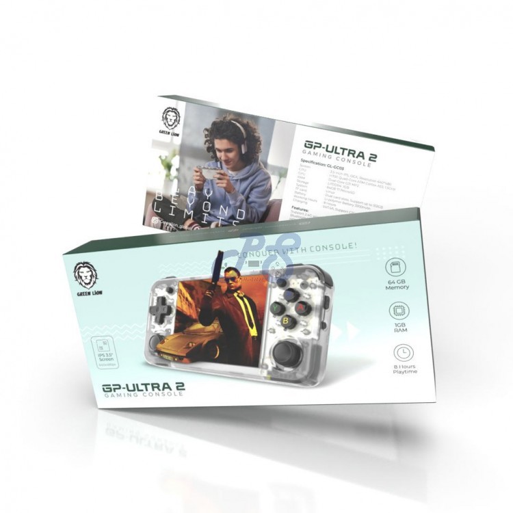 کنسول دستی GP-Ultra 2 بهترین کنسول دستی برای تجربه بهترین بازیها است. این کنسول دستی دارای نمایشگر 3.5 اینچ IPS با کیفیت 640x480 است که بازیها را با بهترین کیفیت تصویر ارائه میکند. کنسول GP-Ultra 2 دارای یک کارت میکرو SD با ظرفیت ۶۴ گیگابایت و فضای یک کارت میکرو SD دیگر با حداکثر ظرفیت ۵۱۲ گیگابایت است. این کنسول دارای سیستم عامل مبتنی بر لینوکس و باتری لیتیوم یونی قابل شارژ است که تا حداکثر هشت ساعت قابل استفاده است. شما میتوانید انواع گیم پد را با کابل یا به صورت بیسیم با استفاده از اتصال وای فای و بلوتوث به این کنسول وصل کنید. این کنسول با کابل HDMI به تلویزیون وصل میشود و از استریم تصویر با استفاده از شبکه بیسیم نیز پشتیبانی میکند. کنسول GP-Ultra 2 دارای دو موتور لرزاننده است و بازیهای ویدیویی را به شکلی متفاوت بازتعریف میکند.