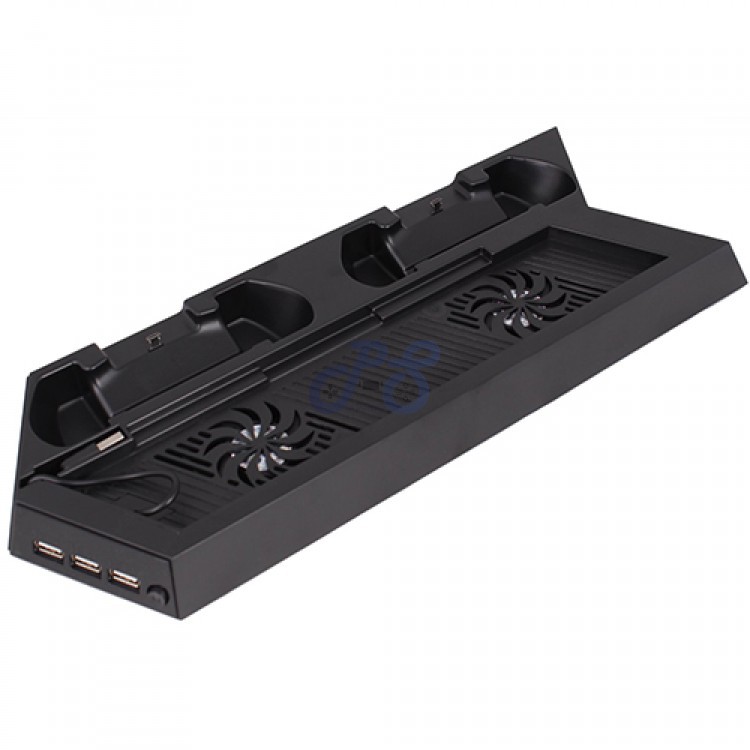 استند عمودی خنک کننده پلی استیشن 4 دارای 2 فن است که گرما را از کنسول شما رانده و آ« را خنک نگه میدارند. دیگر نگران داغ شدن کنسول و میز خود نباشید و تا ساعتها با کنسول خود بازی کنید.این استند دارای دو محل شارژ کنترلر Dualshock 4 است و میتوانید آنها را به صورت همزمان شارژ کنید. همچنین، این استند سه محل اتصال USB دارد. همچنین با قرار دادن کنسول خود به صورت عمودی، فضای زیادی را در اتاق خود صرفه جویی کنید و ظاهر بهتری به سیستم بازی خود بدهید. - استند چند کار: استند عمودی کنسول + خنک کننده – شارژ دو کنترلر به صورت همزمان – سه پورت اتصال USB- دارای دو فن خنک کننده برای خنک و بی صدا نگه داشتن کنسول- قابلیت شارژ دو کنترلر Dualshock 4 به صورت همزمان- طراحی این استند به شما اجازه میدهد تا علاوه بر اشغال فضای کمتر روی میز خود، ظاهر بهتری به ستاپ بازی خود بدهید. - سه پورت USB برای شارژ دیگر وسایل