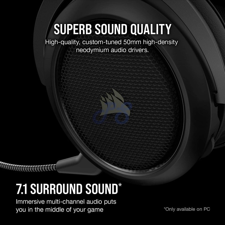 هدست Corsair HS70 یک هدست گیمینگ بی‌سیم با راحتی فوق‌العاده بالا و ابری‌های بسیار نرم است که گوش را می‌پوشانند.این هدست دارای درایورهای 50 میلی‌متری قدرتمند و صدای فراگیر 7.1 است که به شما این امکان را می‌دهد تا تک تک صداهای میدان‌های نبرد را بشنوید و از هم تشخیص دهید و از بازی خود لذت ببرید. صدای فراگیر 7.1 فقط روی ویندوز ۱۰ قابل استفاده است.این هدست دارای یک میکروفون قابل جداسازی است که با کاهش صدای محیط و ضبط صدا فقط از یک جهت به شما این امکان را می‌دهد تا با صدایی واضح و رسا با دوستان خود صحبت کنید.این هدست به صورت بی‌سیم به کامپیوتر و پلی استیشن 4 وصل می‌شود و تا فاصله ۱۲ متری قابل استفاده است. با هر بار شارژ این هدست تا ۱۶ ساعت می‌توانید از آن استفاده کنید.
