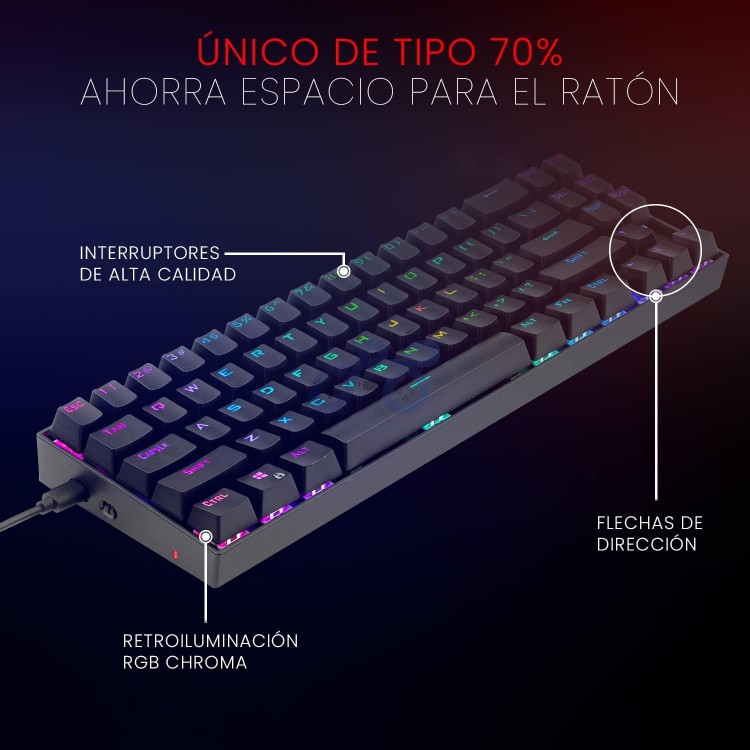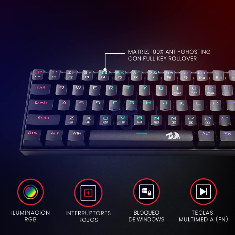 کیبورد Redragon Deimos یک کیبورد گیمینگ جمع و جور است که برای ارائه بهترین تجربه تایپ و گیمینگ از سوییچهای قرمز پرسرعت بهره میبرد. این کیبورد نورپردازی RGB قابل شخصیسازی هم ارائه میکند و ظاهر زیباتری به اتاق گیمینگتان میبخشد. طراحی جمع و جور کیبورد Redragon Deimos بدون ارائه کلیدهای numpad با 70 کلید طراحی جمع و جوری ارائه میکند که بدون فدا کردن دکمههای کاربردی، دست شما را برای حرکت آزادانه موس روی میز باز میگذارد.علاوه بر این، زاویه قابل تنظیم پایه کیبورد هم به ارگونومی بهتر آن برای انگشتان کمک میکند. سوییچهای قرمز Outemu این کیبورد از سوییچهای قرمز ضد گرد و غبار بهره میبرد و با ارائه سرعت تشخیص بسیار سریع، کمترین مقاومت را در مقابل فشار انگشتان شما خواهد داشت. تمام کلیدهای کیبورد Redragon Deimos روکش ضدلغزش دارند تا هنگام فشردن آنها دچار خطا نشوید. کلیدهای بادوام کیبورد Redragon Deimos با عمر حداقل 50 میلیون ضربهای در سختترین شرایط گیمینگ هم درکنارتان خواهند بود. نورپردازی RGB تا 19 نوع نورپردازی مختلف RGB با میانبر روی کیبورد Redragon Deimos قابل انتخاب است. همچنین میتوانید سرعت تغییر نور را با دقت بالا کنترل کرده و روشنایی چراغها را هم در شش حالت مختلف تنظیم کنید. این کیبورد یک حالت نورپردازی قابل شخصیسازی هم ارائه میکند. اتصالات کیبورد Redragon Deimos از اتصال بیسیم و سیمی پشتیبانی میکند. در حالت بیسیم، باتری این کیبورد تا 60 ساعت با LED خاموش و تا 30 ساعت با LED روشن شارژدهی دارد.