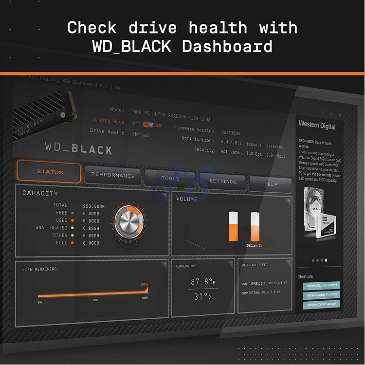 با نسل جدید SSDهای وسترن بلک، زمانهای بارگذاری بازیها را فراموش کنید. حافظه جانبی WD_BLACK SN850 با استفاده از اینترفیس انقلابی PCIe 4عملکردی برترحافظه WD_BLACK SN850 با استفاده از رابط PCIe 4.0 سرعت کامپیوتر و لپتاپ شما را به شکل قابل توجهی افزایش میدهد تا بتوانید بازیهای جدید را بدون هیچ افت سرعتی اجرا کنید.عملکردی عالی در ابعادی کوچکحافظه WD_BLACK SN850 دارای ویژگی M.2280 است و به راحتی در سیستم کامپیوتری شما جای میگیرد. با داشتن رابط M.2280، این حافظه جانبی کاملا با پلی استیشن 5 سازگار است.فراتر از سرعتحافظه WD_BLACK SN850 دارای سرعت خواندن هفت هزار مگابایت بر ثانیه و سرعت نوشتن 5300 مگابایت بر ثانیه و به راحتی و روانی یک میلیون عملیات ورودی و خروجی دیتا را در ثانیه اجرا میکند تا سرعتی باورنکردنی را تجربه کنید.حافظههای SSD با رابط PCIe 4.0 حرارت بسیار زیادی را تولید میکنند و نیازمند سیستم خنککننده مجزایی هستند. حافظه WD_BLACK SN850 به یک هیت سینک اختصاصی نیاز دارد تا بتوانید از عملکرد آن مطمئن شوید.ساخته شده برای بازیحافظه WD_BLACK SN850 دارای گیت NAND اختصاصی است که ضامن دوام بالای این حافظه جانبی حتی در هنگام اجرای بازیهای بسیار سنگین در مدتهای طولانی است.